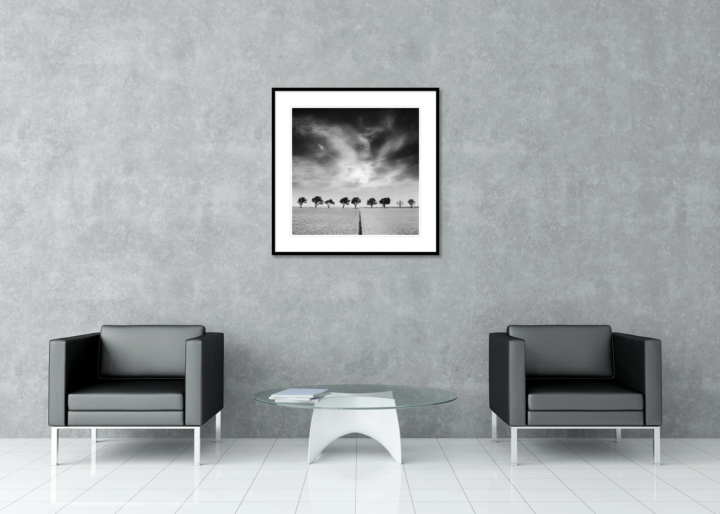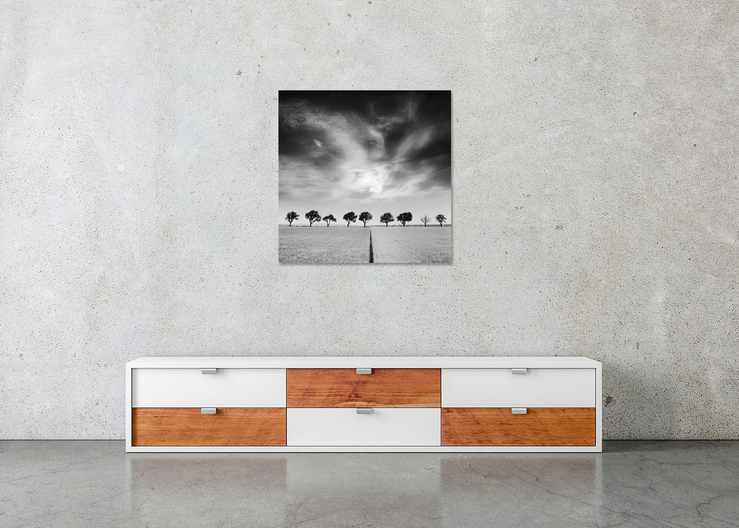 SILVERFINEART GALLERY - Gerald Berghammer - Landscape, Cherry Trees and Dark Sky, Amazing Clouds, Field, Austria.