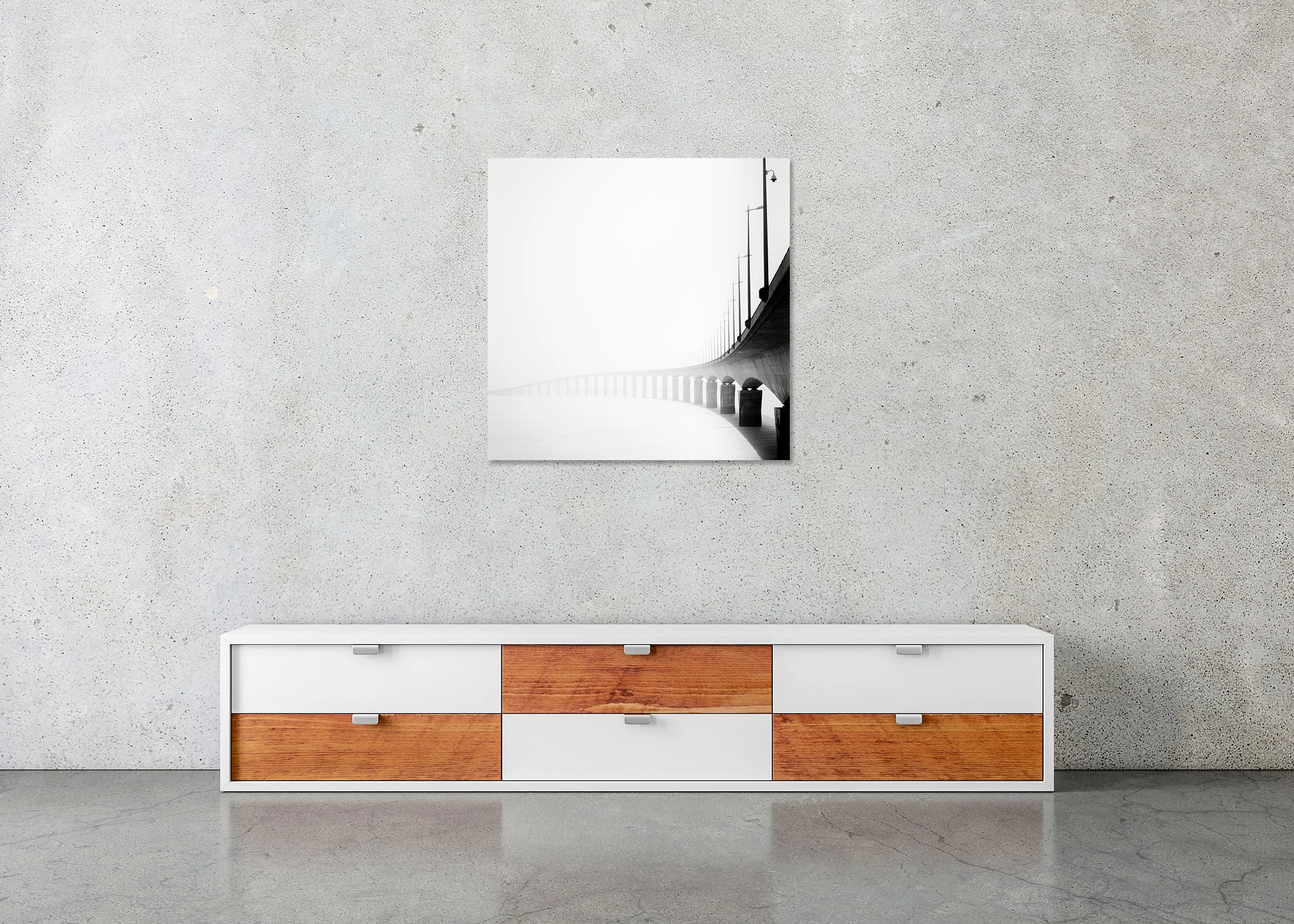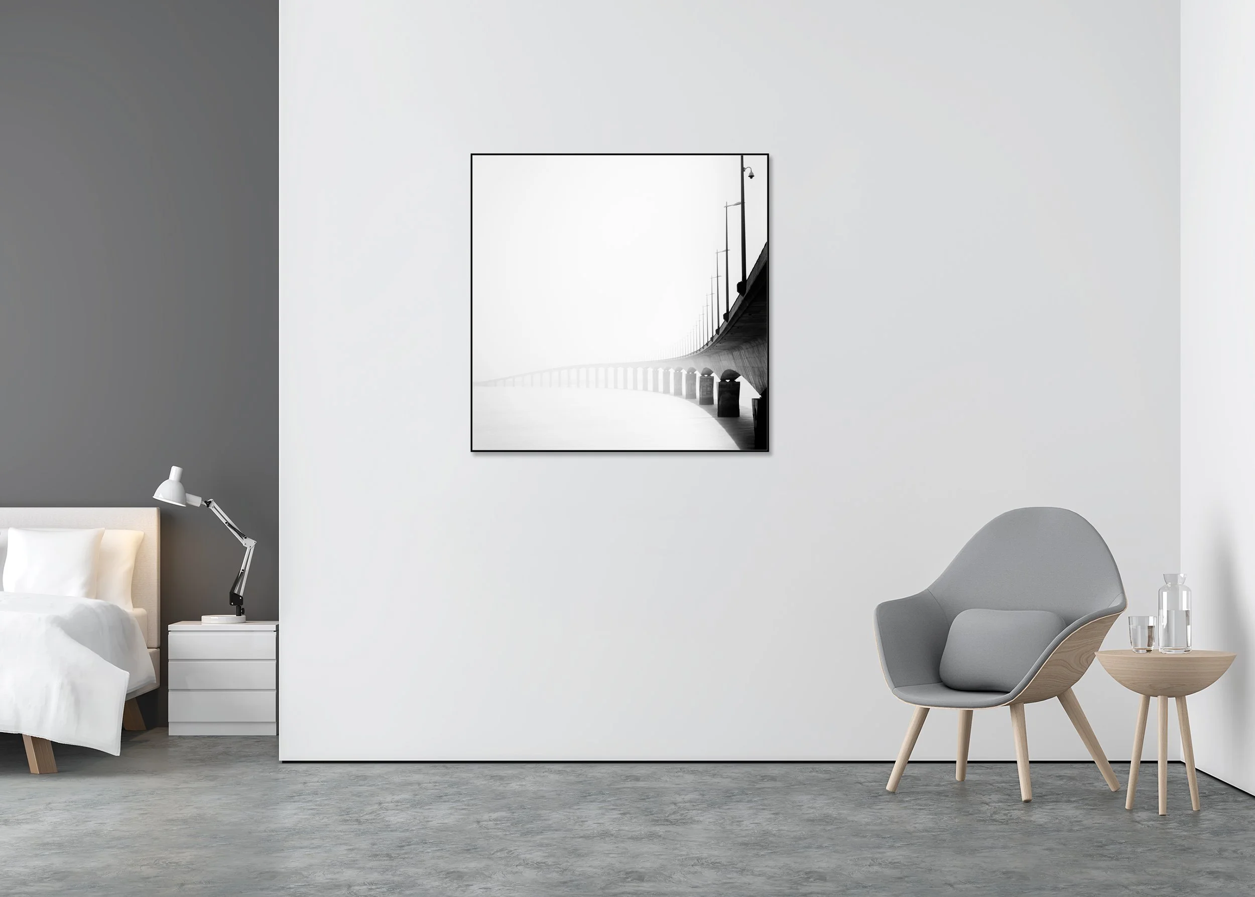 Silverfineart, Gallery, Gerald Berghammer, minimalist Cityscape, Pont de Ile de Re Bridge, misty morning, France.