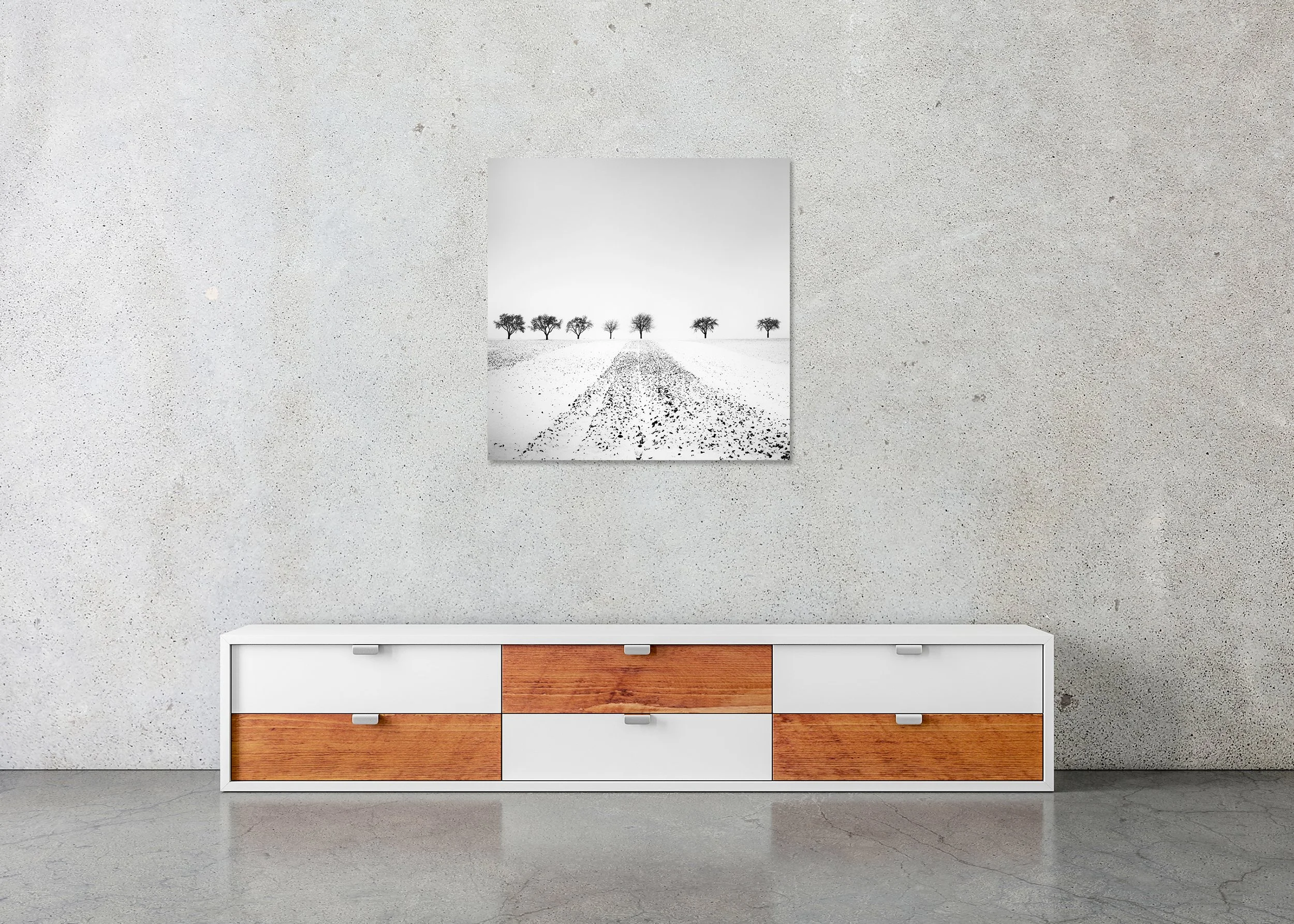 SILVERFINEART GALLERY - Gerald Berghammer - Minimalist Landscape, Trees in snowy Field, Winter Land, Austria.