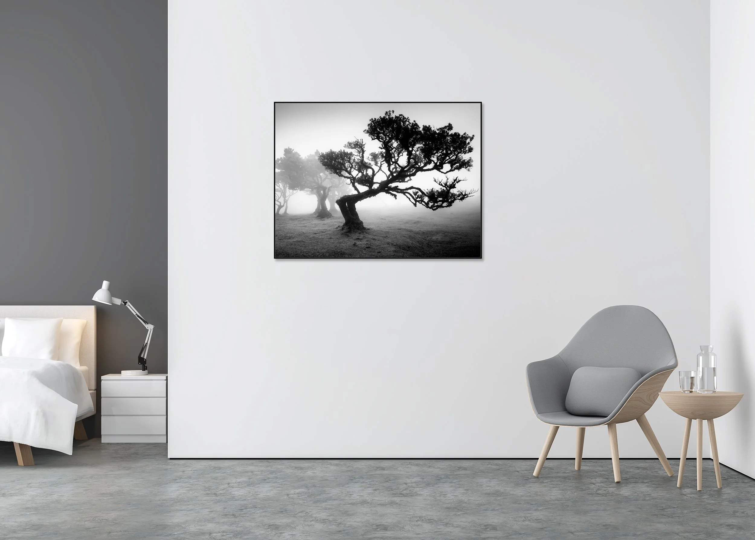 SILVERFINEART - Gerald Berghammer - Mystic Landscape, Ancient Laurisilva Forest, Bent Tree, hazy, Madeira.