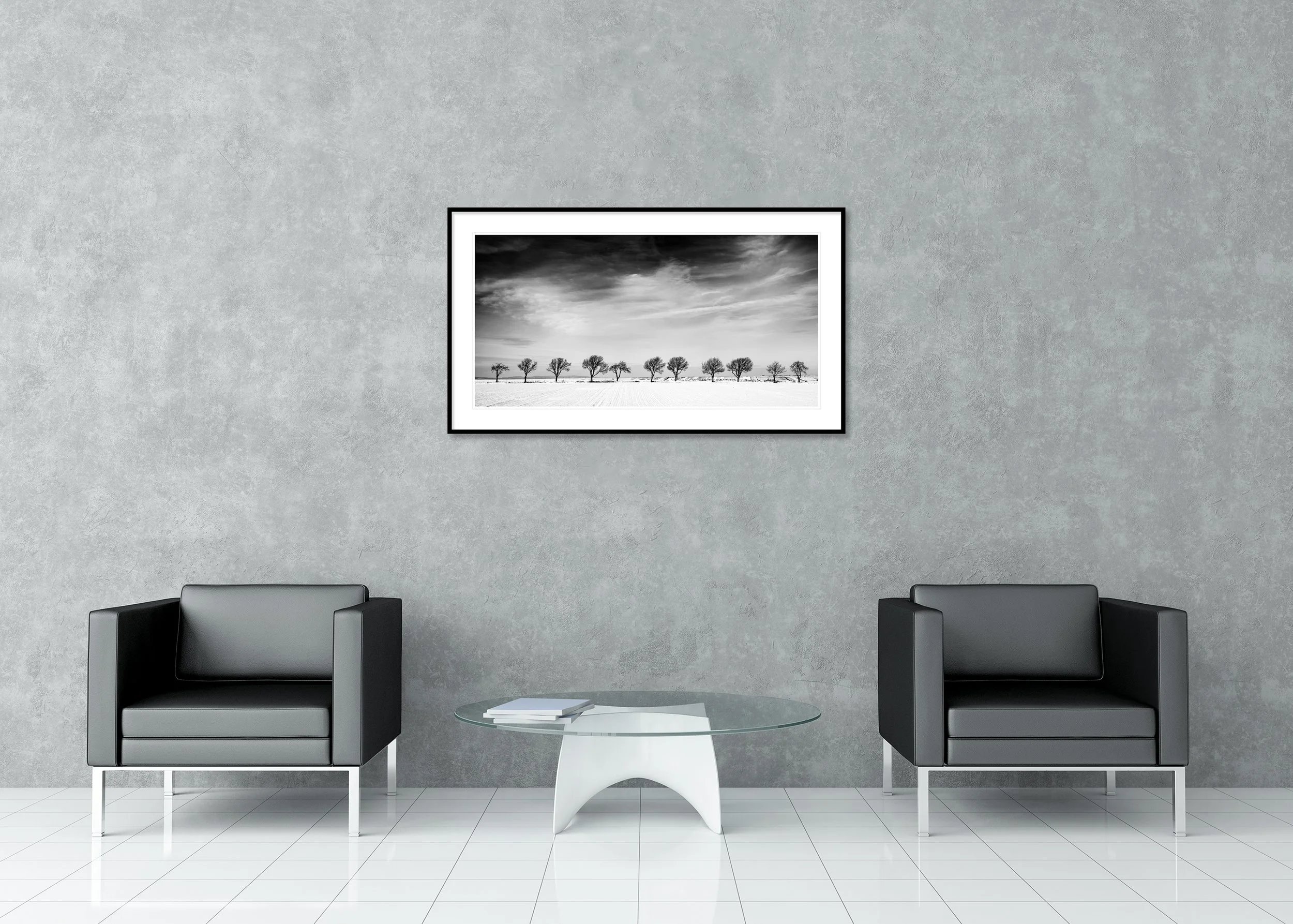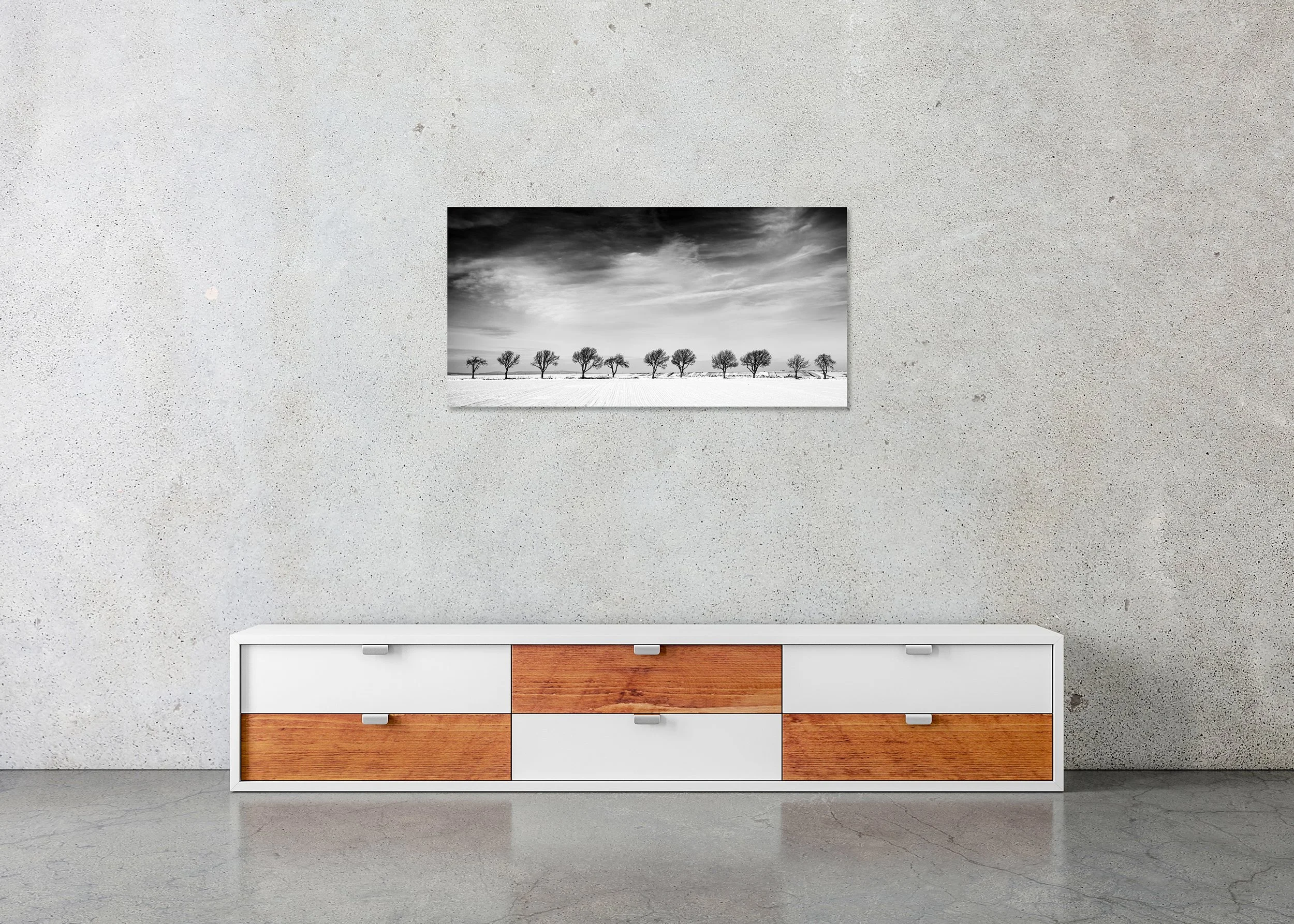 SILVERFINEART - Gerald Berghammer - Winter Landscape, Eleven Trees in the snow Field, Panorama, Austria.